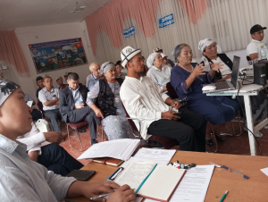 Отчет учурунда социалдык-экономикалык өнүгүү программасынын негизинде жүзөгө ашырылып жаткан иштер, айыл аймактын социалдык абалы, инфраструктура, суу менен камсыздоо, тазалык жана башка багыттар боюнча жетишкен ийгиликтер менен катар көйгөйлүү маселелер да айтылды.